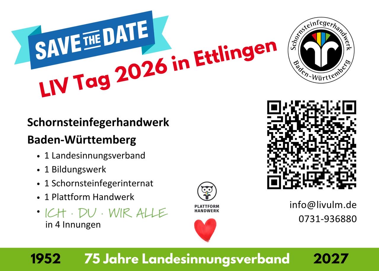 Der Landesinnungsverband Baden-Württemberg und die Schornsteinfegerinnung für den Reg.-Bezirk Karlsruhe laden alle Mitglieder und interessierte Schornsteinfeger nach Ettlingen ein.