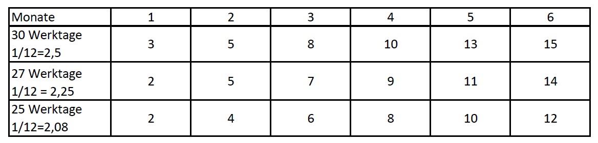 Tabelle für die Zwölftelung des Urlaubs